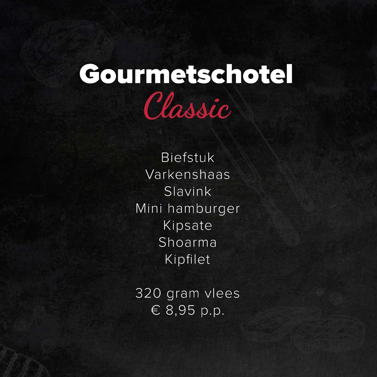 Deze Gourmetschotel Classic kost €8,95 per persoon.