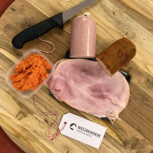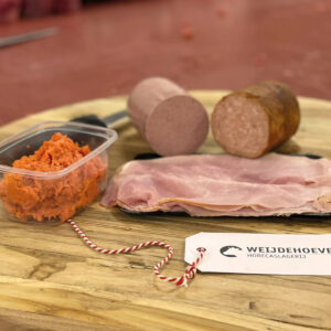 Weekend pakket! Bestaande uit een leverworst, grillworst, boeren achterham en filet american voor maar € 12,50!